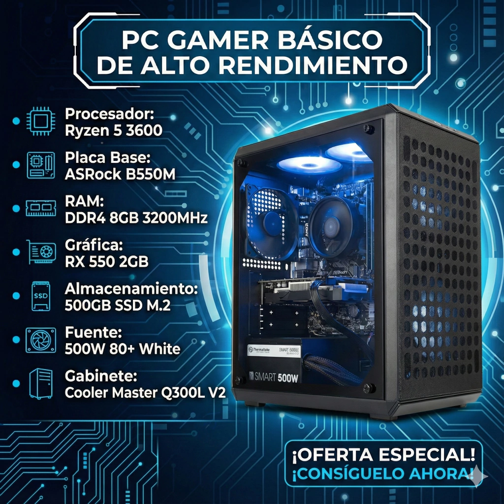 ¿Puedo mejorarlo en el futuro? ¡Sí! Gracias a la placa B550 y la fuente certificada, podrás ponerle más RAM o cambiar la tarjeta de video más adelante sin problemas.